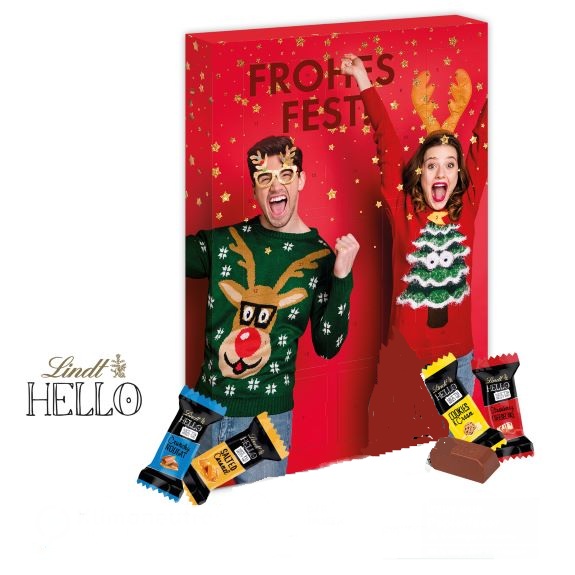 HELLO Adventskalender von Lindt mit Logo bedruckt als Werbeartikel