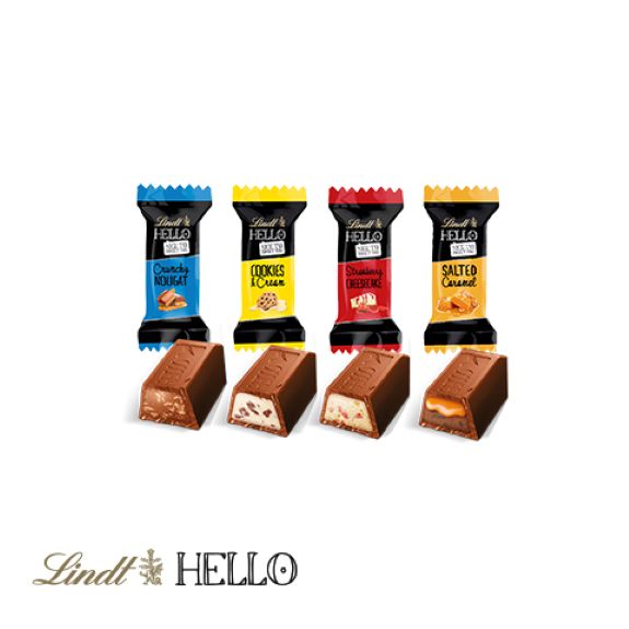 - Füllung: 24 Stück (ca. 240 g) Lindt HELLO Mini Stick Mix in den Sorten: