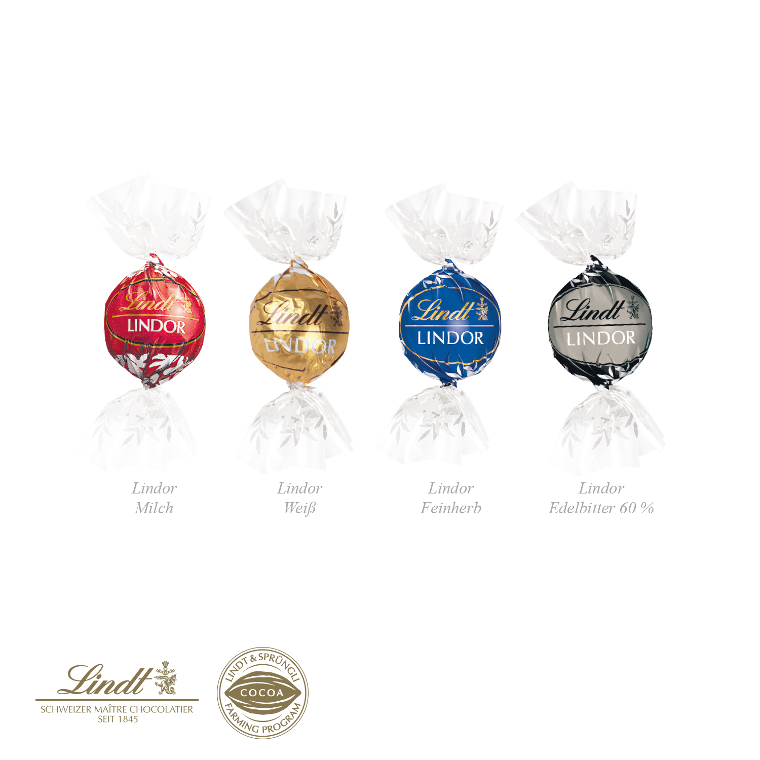 – Feinherb von Lindt-Lindor, Edelbitterschokolade mit zartschmelzender feinherber Füllung - Mindestabnahme: 100 Stück