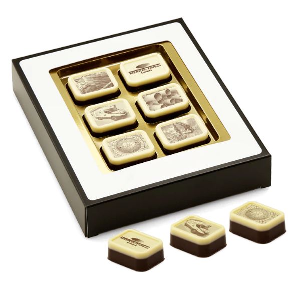 Pralinen mit Logo bedruckt in Geschenkbox, 6er