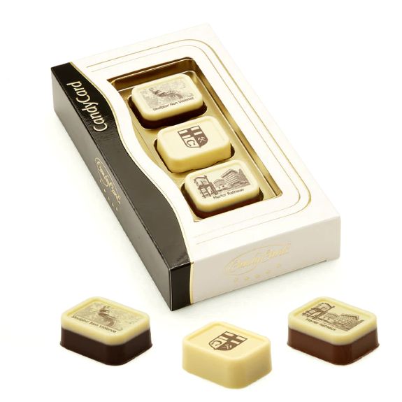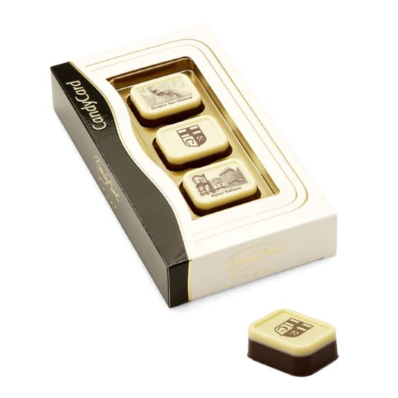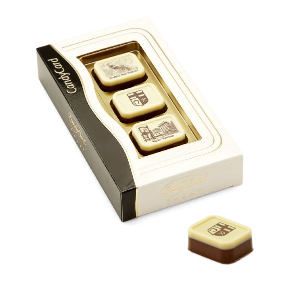 Pralinen mit Logo bedruckt in Geschenkbox, 3er