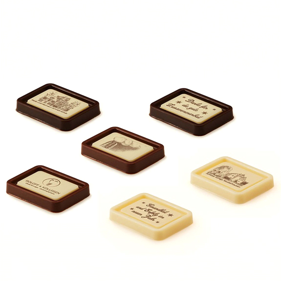 Schoko Täfelchen mit Ihrem Logo direkt auf der Schokolade als Werbeartikel
