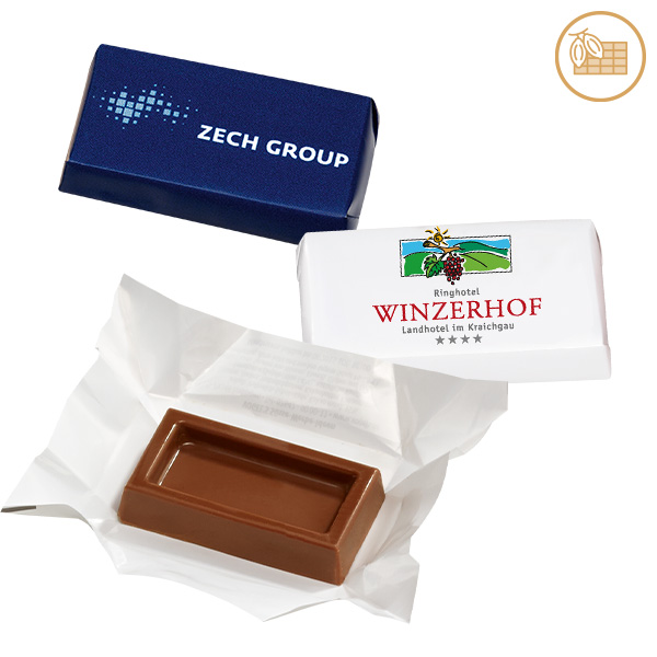 Schokotäfelchen Fairtrade individuell bedrucken mit Ihrem Logo als Werbeartikel