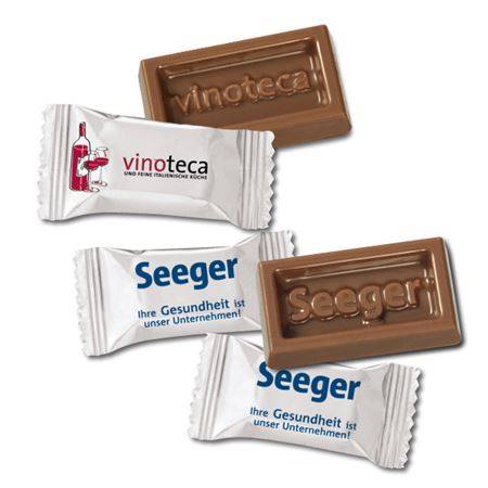 Individuelle ProduktanfrageSchokotäfelchen mit Prägung als Werbeartikel mit Logo in 4,6 g