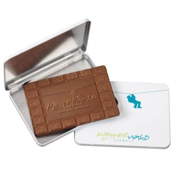Schoko Tafel mit individueller Prägung in Werbedose, 60g